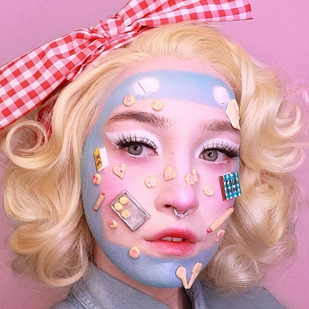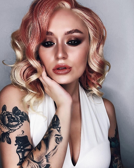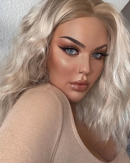 Trendy wavy synthetic lace front wig, gorgeous blonde hair color.
