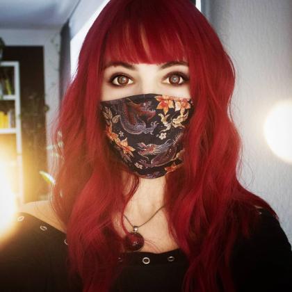 Red gothic medium length wavy synthetic wig with bangs, best choice for lolita girls.