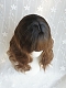 Daily brown medium wavy synthetic wig with bangs and black roots.