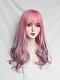 2021 new style pink ombre long wavy synthetic wig with bangs.