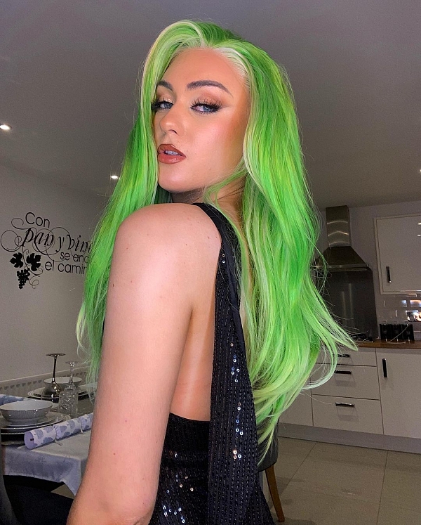 Evahair Green and Fore Pink Long Straight Synthetic Lace Front Wig