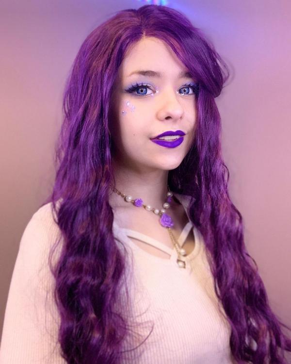 Dark Purple color wavy synthetic lace front wig.